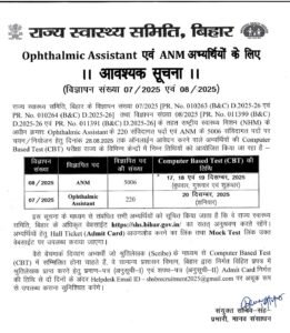 Bihar ANM Admit Card 2025 Release: वैसे अभ्यर्थी जो कि राज्य स्वास्थ्य समिति बिहार द्वारा आयोजित होने वाली ANM के परीक्षा में बैठने वाले हैं। उन सभी अभ्यर्थियों के लिए बहुत ही सुनहरा मौका निकल के सामने आया हुआ है। दोस्तों आज हम आपको बताने वाले हैं कि राज्य स्वास्थ्य समिति बिहार द्वारा एक आवेदन को ऑनलाइन के रूप में भरवारा गया था जिसकी विज्ञापन संख्या 08/2025 थी। उन सभी अभ्यर्थियों को हम बता देना चाहते हैं कि विभाग के द्वारा Bihar ANM exam को लेकर के आधिकारिक वेबसाइट पर नोटिस को जारी कर दिया गया है।
