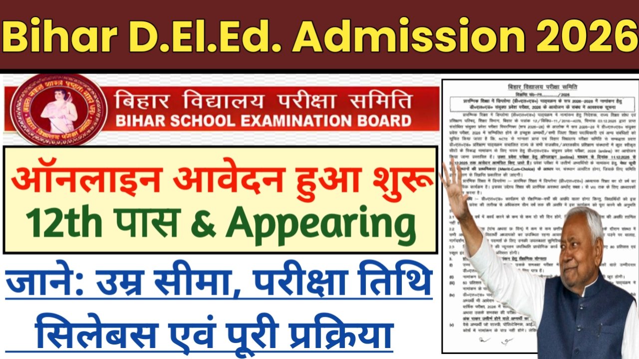 Bihar D.El.Ed. Entrance Exam Online 2026: Bihar D.El.Ed. Entrance Exam 2026 के लिए आवेदन हुआ जारी, जल्दी करें यहां से अप्लाई एवं जाने उसकी पूरी प्रक्रिया।