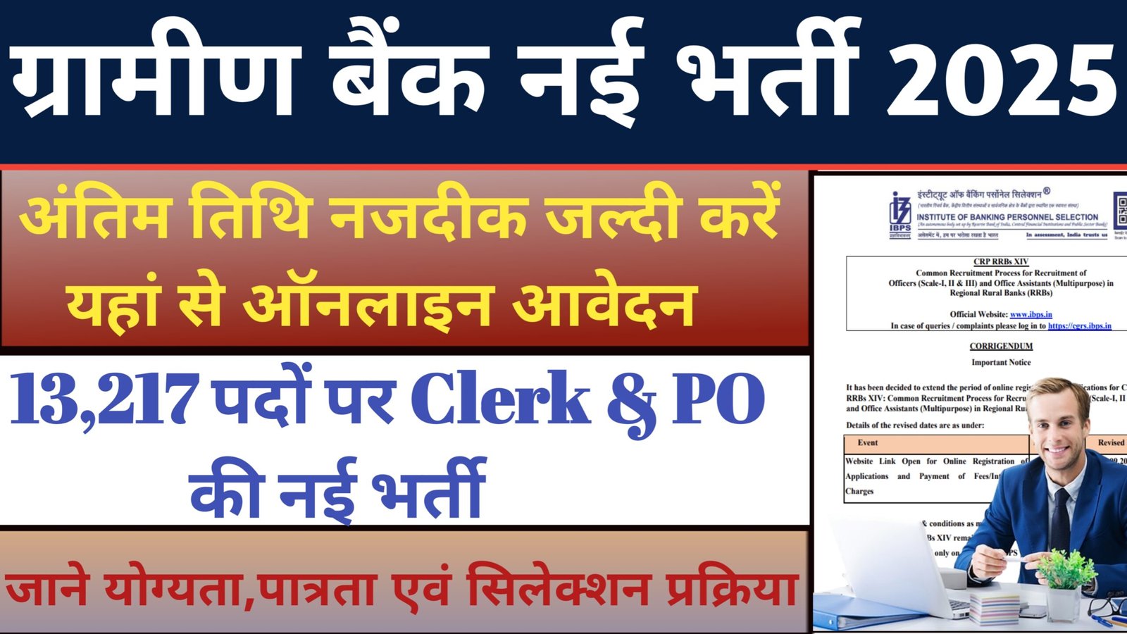 Gramin Bank Clerk & PO Vacancy 2025: IBPS के तहत Gramin Bank में Clerk & PO के 13,200 पदों पर निकली भर्ती, यहां जाने इसका चयन प्रक्रिया एवं पूरी जानकारी।