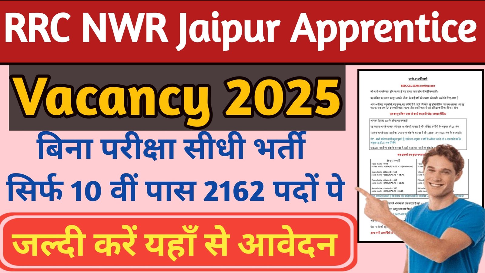 RRC NWR Jaipur Apprentice Recruitment 2025: RRC Jaipur ने Apprenticeship हेतू बिना परीक्षा के 2162 पदों पर निकाली बंपर भर्ती, जाने पूरी प्रक्रिया एवं यहां से जल्दी करें ऑनलाइन आवेदन।