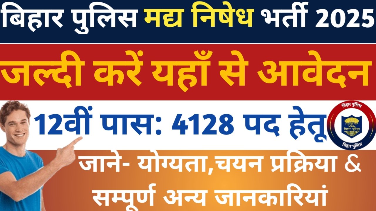 Bihar Police Prohibition New Recruitment 2025: बिहार पुलिस मद्य निषेध सिपाही की 4128 पदों पर भर्ती के लिए अधिसूचना हुई जारी, जल्दी करें यहां से ऑनलाइन एवं जाने इसकी पूरी प्रक्रिया तथा सिलेक्शन प्रोसेस।