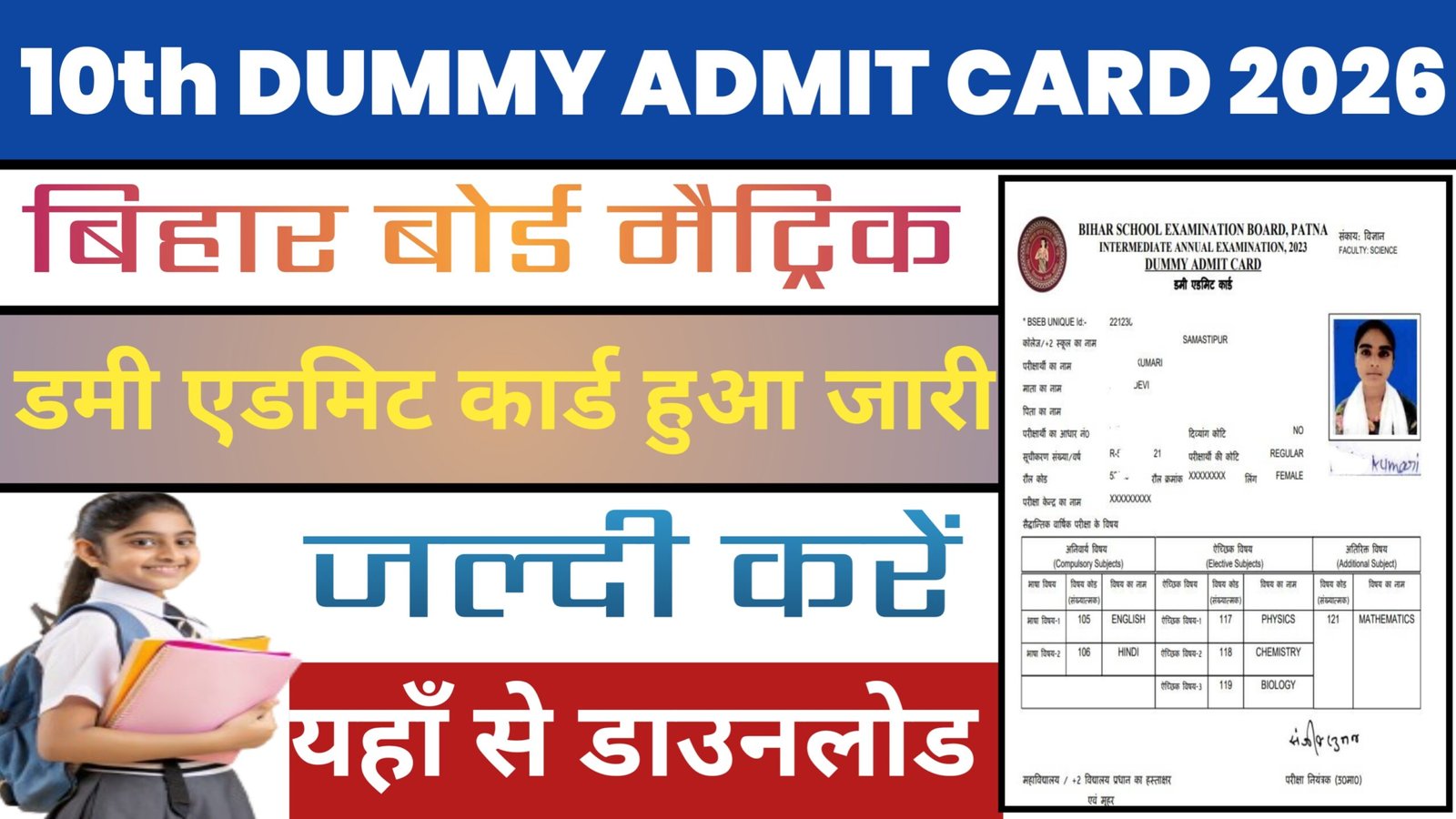 Bihar Board 10th Admit Card Issue 2026: बिहार बोर्ड ने मैट्रिक /10वीं का डमी एडमिट कार्ड किया जारी, जल्दी यहां से करें डाउनलोड।