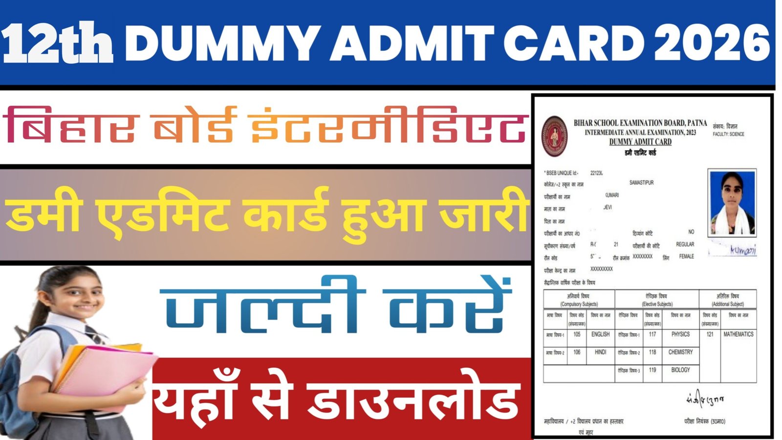 Bihar Board 12th Dummy Admit Card 2026 Release: बिहार बोर्ड ने इंटरमीडिएट का डमी एडमिट कार्ड किया जारी, यहां से करें डाउनलोड।